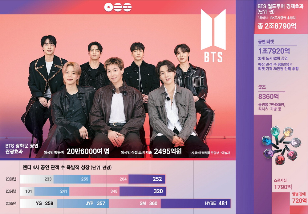 공연은 BTS뿐만 아니라 K팝 산업 전체를 이끌어가는 핵심 성장 동력으로 자리매김하고 있다. 공연을 통해 아티스트와 깊이 교감한 팬들은 더 높은 충성도를 형성해 팬덤 재확대와 차기 투어 규모 확대라는 선순환 구조로 이어지고 있다.