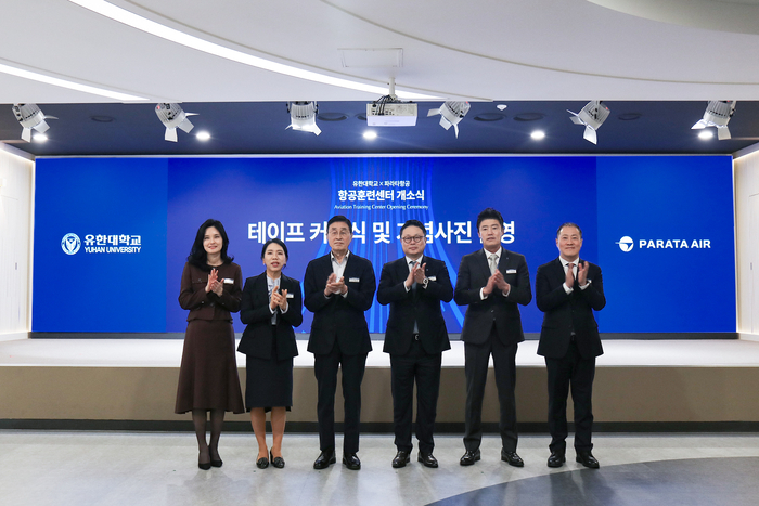 파라타항공X유한대학교 항공훈련센터 개소식/사진=파라타항공 파라타항공이 유한대학교와 손잡고 항공훈련센터를 구축했다. 항공 안전 역량을 강화하고 미래 항공 인재를 체계적으로 양성하겠다는 전략이다.