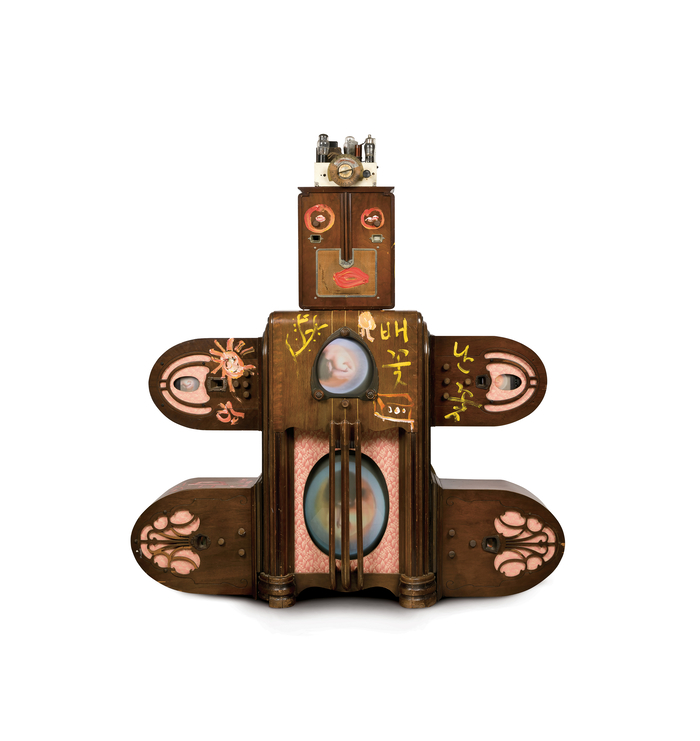 백남준의 ‘김활란 박사’(1997) <서울옥션> 백남준이 낡은 라디오와 TV로 만든 초상 설치작 ‘김활란 박사’가 서울옥션 경매에 나온다.