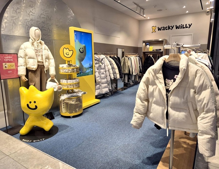 먼저 명동점에 K패션 브랜드 ‘와키윌리(Wacky Willy)’의 명동점 팝업을 오픈한다. 새롭게 선보인 팝업 매장은 브랜드의 상징적인 옐로우 캐릭터 ‘키키(KIKI)’를 중심으로 밝고 유쾌한 분위기를 연출한다.