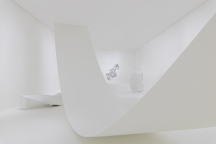 야외 ‘무의 공간’에는 10m 높이의 브론즈 조각 6점이 들어섰다. 산세와 건축 높이에 맞춘 배치된 작품은 개별 조형물이 아니라 풍경의 일부처럼 작동한다. 작가는 “보통 조각은 볼륨감을 보지만,이 작업은 표면을 봐주면 좋겠다”밝혔다.