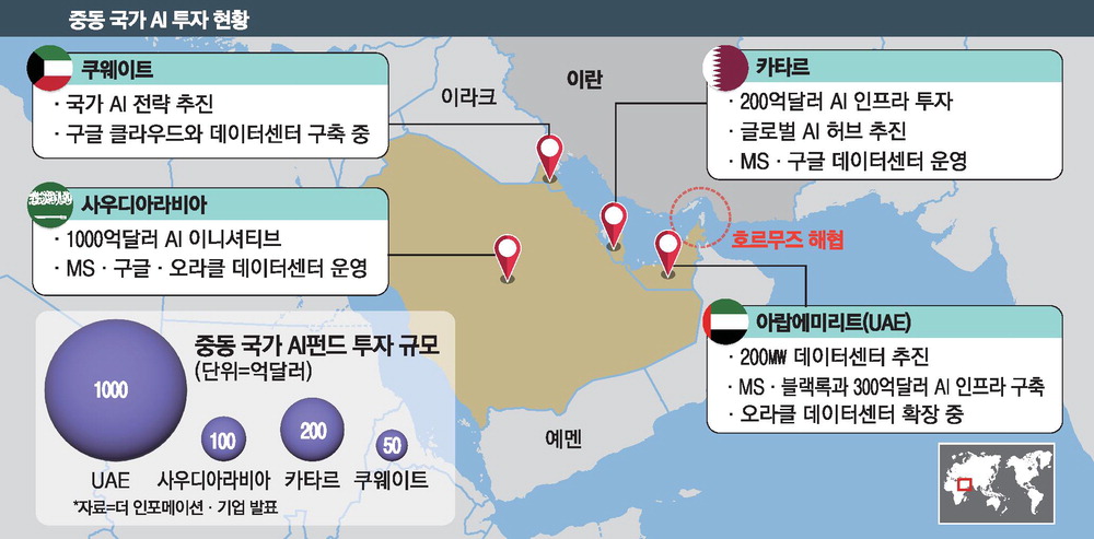 글로벌 AI 투자 불확실성UAE 데이터센터 등 드론 공습해저 핵심 통신망도 공격 노출오일머니로 AI 투자 나선 중동구글 등 빅테크와 협력 빨간불투자계획 연기·재검토 할수도