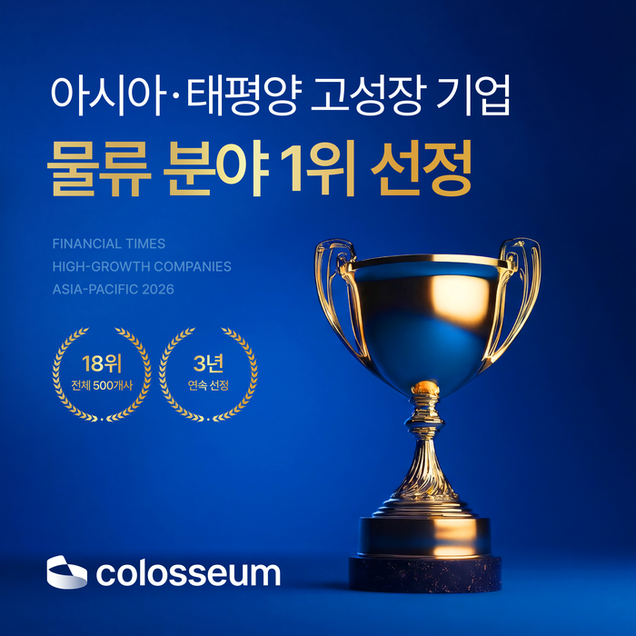 글로벌 물류 DX 파트너 콜로세움코퍼레이션이 ‘2026 아시아·태평양 고성장 기업’에서 물류 분야 1위,전체 500개 기업 중 18위에 선정됐다. [콜로세움] 글로벌 물류 DX 파트너 콜로세움코퍼레이션이 ‘2026 아시아·태평양 고성장 기업’에서 물류 분야 1위,전체 500개 기업 중 18위에 선정됐다. 이와 함께 같은 시기 실시한 고객만족도 조사에서도 담당자 FD 커뮤니케이션 항목이 5년 연속 최상위 점수를 기록하며,외부 공신력과 고객 신뢰를 동시에 입증했다.