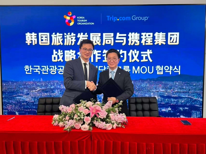 (좌) 트립닷컴 부총재 천관치 (우) 공사 박성혁 사장 / 사진=한국관광공사 관광공사는 이 흐름을 이어가기 위해 플랫폼 협력 확대에 나섰다. 25일 글로벌 온라인여행사 트립닷컴과 업무협약을 맺었다. 약 40여 개국,6억명 규모 이용자를 대상으로 방한 상품 노출을 늘리고 공동 마케팅을 추진한다.